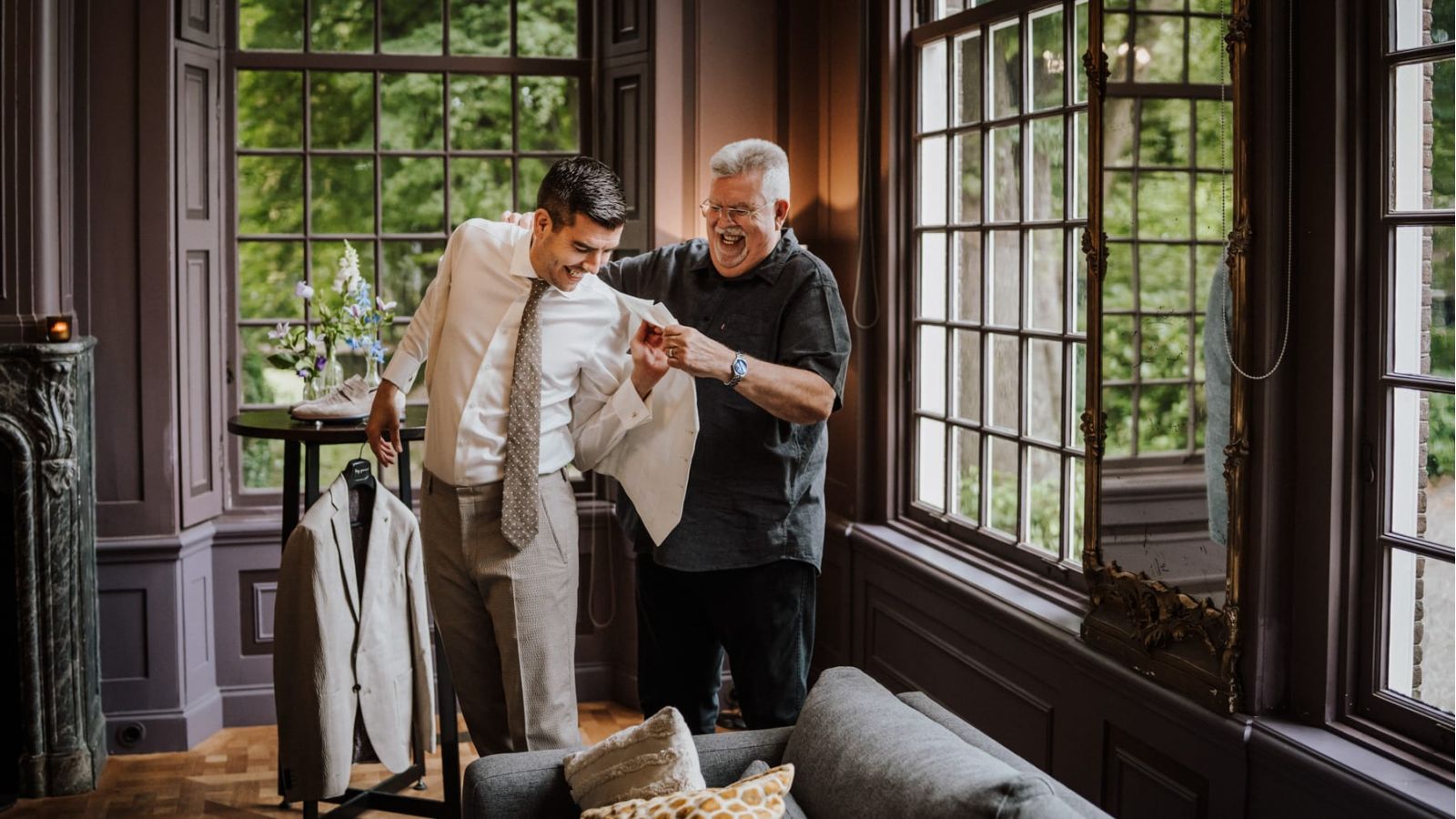 De bruiloft van Chris en Daisy op Buitenplaats Sparrendaal was stijlvol, warm en intiem. Na de ontspannen voorbereidingen in het landhuis trokken we samen het landgoed op voor een prachtige shoot. De bosrijke omgeving rondom Sparrendaal was het perfecte decor – romantisch, groen en sfeervol.